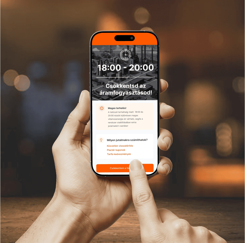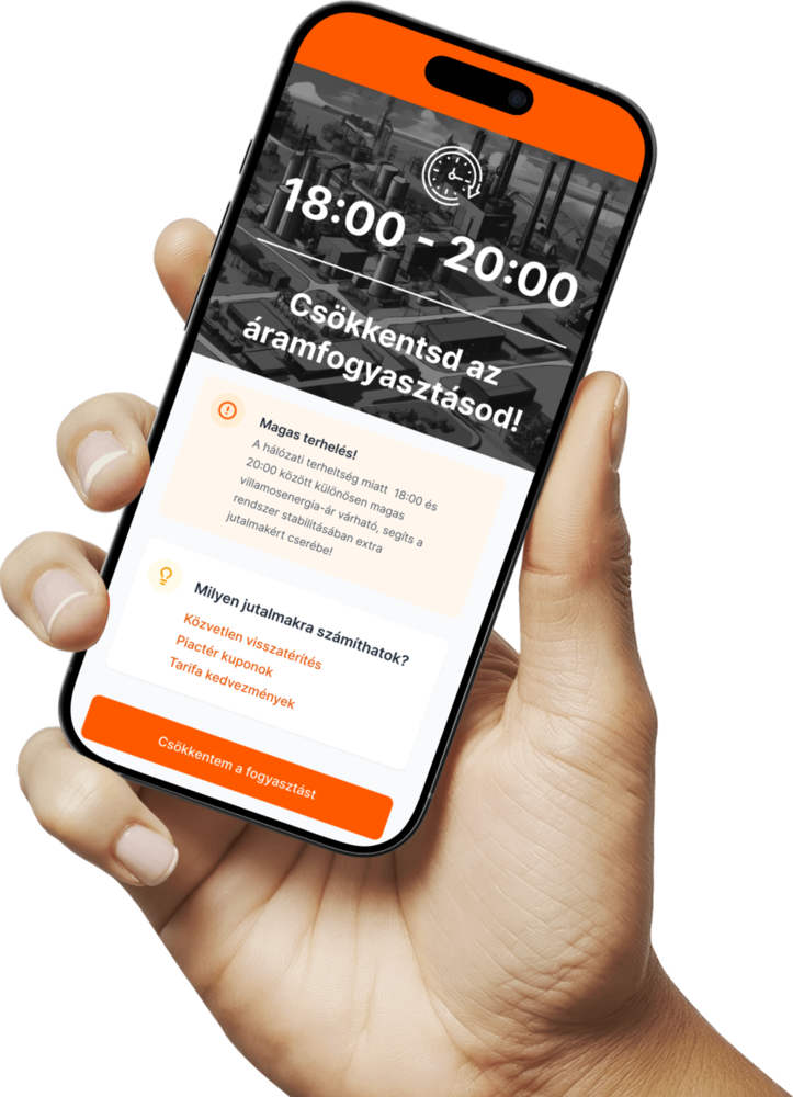 Ha a hálózat túlterhelt, vagy magas az energiaár, értesítést kapsz az alkalmazáson keresztül. Ez lehetőséget ad arra, hogy csökkentsd vállalkozásod fogyasztását és jutalomban részesülj.